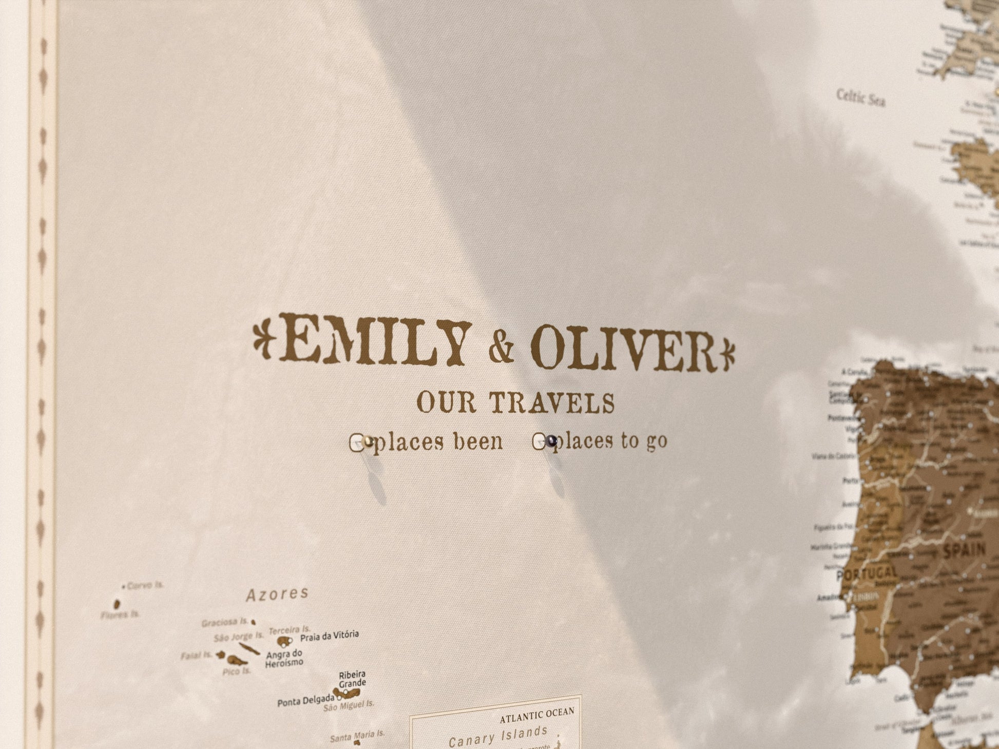 Make your map truly unique by adding personalised text, transforming it into a special keepsake. This custom push pin map is perfect for marking the places you've visited and highlighting your dream destinations.