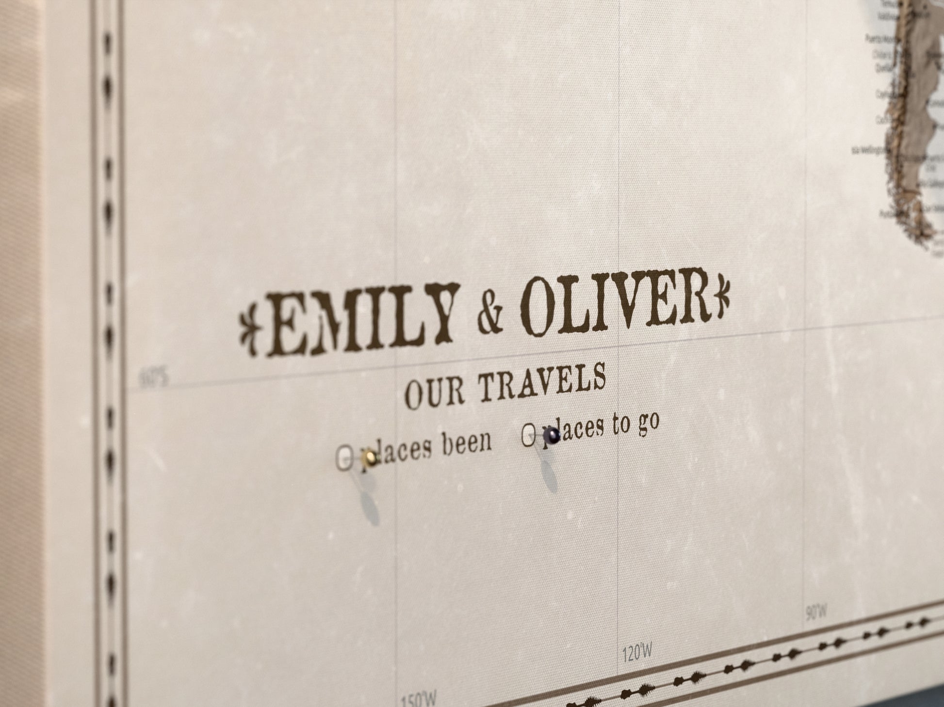 Make your map truly unique by adding personalised text, transforming it into a special keepsake. This custom push pin map is perfect for marking the places you've visited and highlighting your dream destinations.